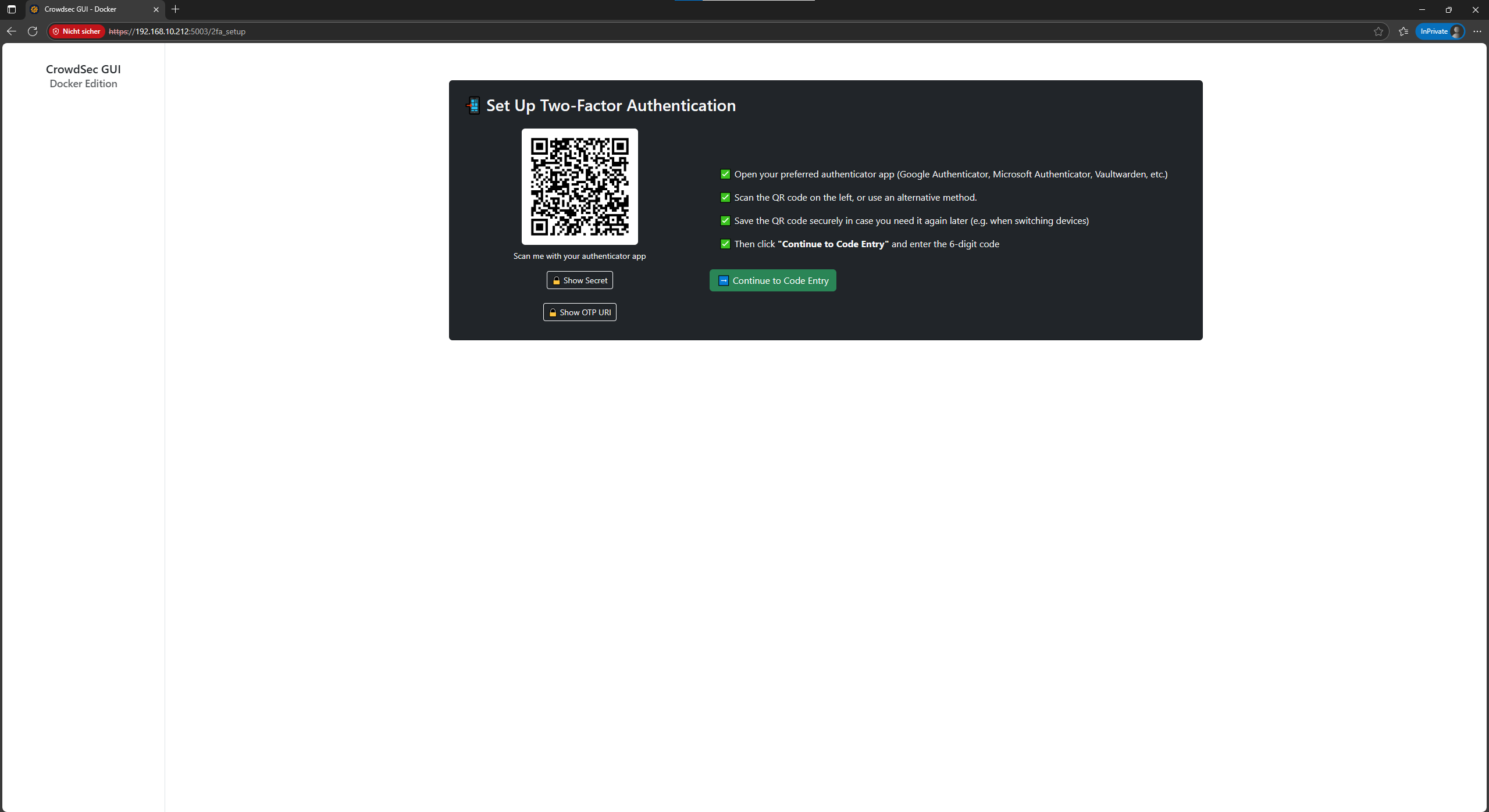 Der Code muss bei jeder neuen Sitzung eingegeben werden. Der Rest ist nahezu identisch mit crowdsec_gui - uGreen Edtion .